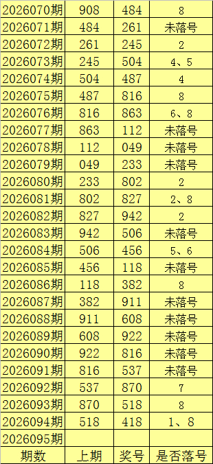福彩3D第2026094奖号418,重号落号。在最近100期(第2025346期-2026094期)中,重号落号70期;最近20期重号落号概率为50%;最近10期重号落号概率为40%。本期防重号全部轮空。